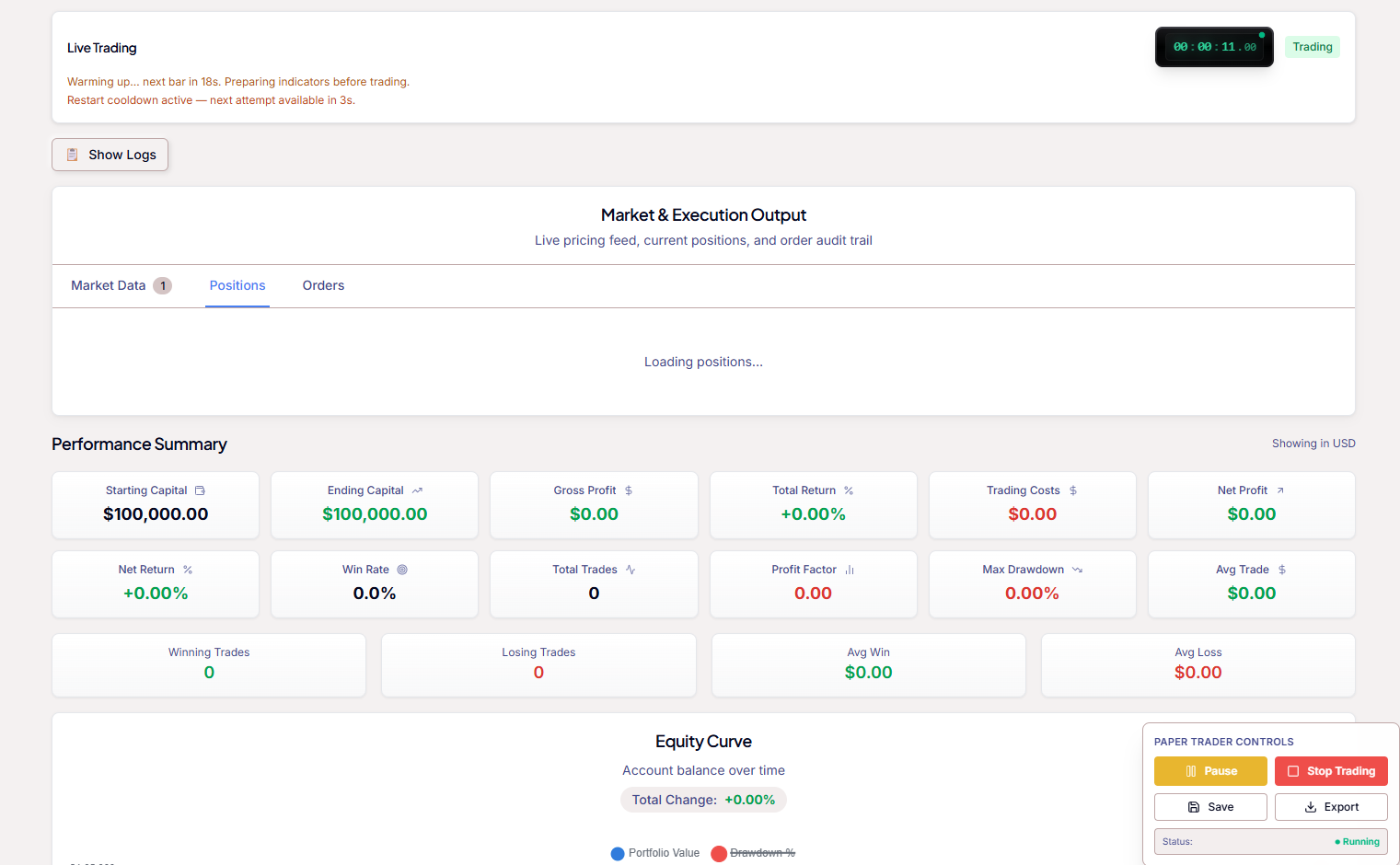 A strategy can look great in a backtest and still fail in practice due to operational issues: unrealistic fills, brittle assumptions, or execution costs that only become obvious in a “live-ish” workflow. Paper trading is where you validate that your system can survive the real world.